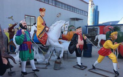 玻璃鋼彩繪雕塑是在雕塑造型定制完成后用顏料油漆手工繪制表面圖案的一種制作工藝,對于手繪人員的美術功底要求較高,常見于佛像、卡通公仔、人物、動植物等都可以使用彩繪工藝定做。